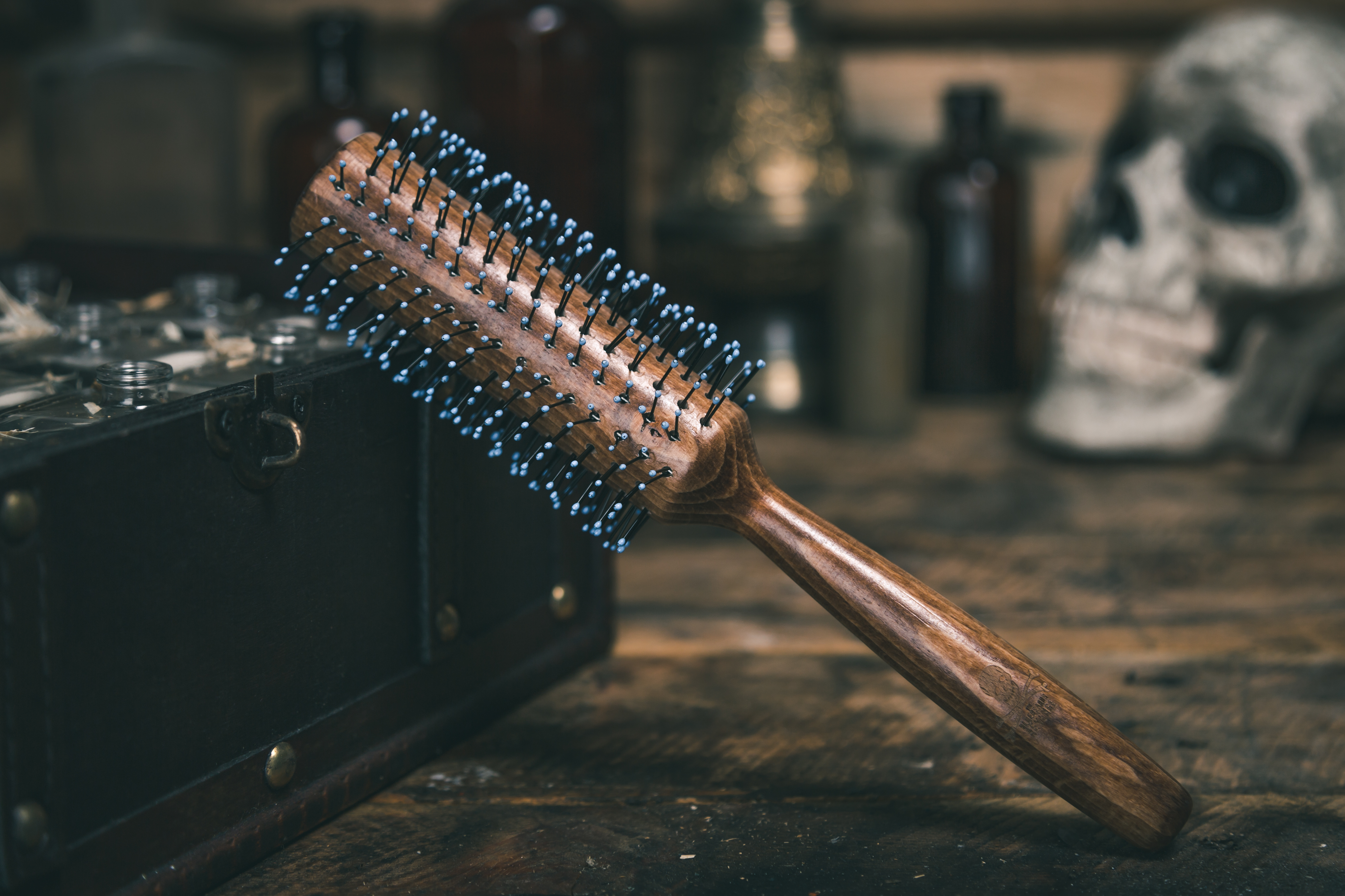 選用具有FSC(森林管理委員會) 認證的櫸木作為主體,刻上藍鬍子經典logo。